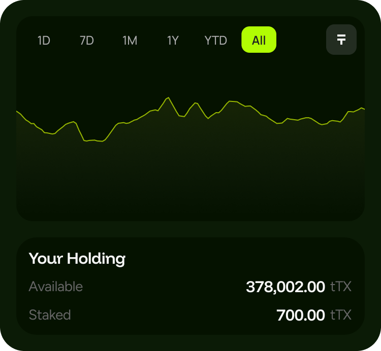 Regulatory Status: TX is not a registered broker-dealer, investment adviser, exchange, custodian, bank, or financial institution, and is not subject to regulation as such. TX does not offer, solicit, arrange, execute, clear, or settle securities or other regulated transactions, and does not provide regulated financial services. Any regulated activities are performed solely by independent third-party providers, which are responsible for their own licensing, registration, and regulatory compliance. Nothing on this website or in the TX mobile application constitutes, or should be construed as, an offer to sell or a solicitation of an offer to buy any security, digital asset, or other regulated instrument. Any such offer or solicitation may be made only by the applicable third-party provider and only in jurisdictions where lawful.